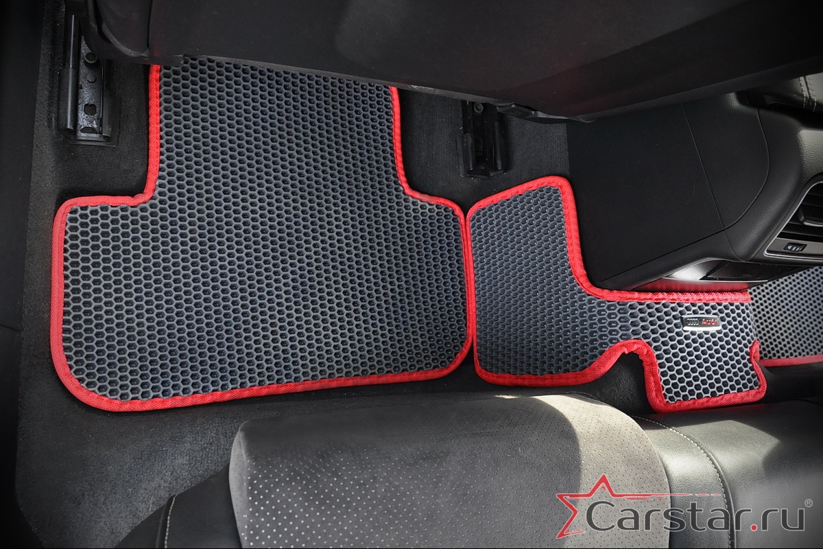 Автомобильные коврики EVA прекрасно подходят для всех существующих марок и моделей авто, здесь вы сможете заказать оптимальный аксессуар любого возможного цвета. По размерам они больше, чем стандартные резиновые коврики, поэтому покрывают максимальную площадь пола в салоне. А двойная система креплений (клипсы и липучки) позволяет надежно зафиксировать коврики в нужном месте.