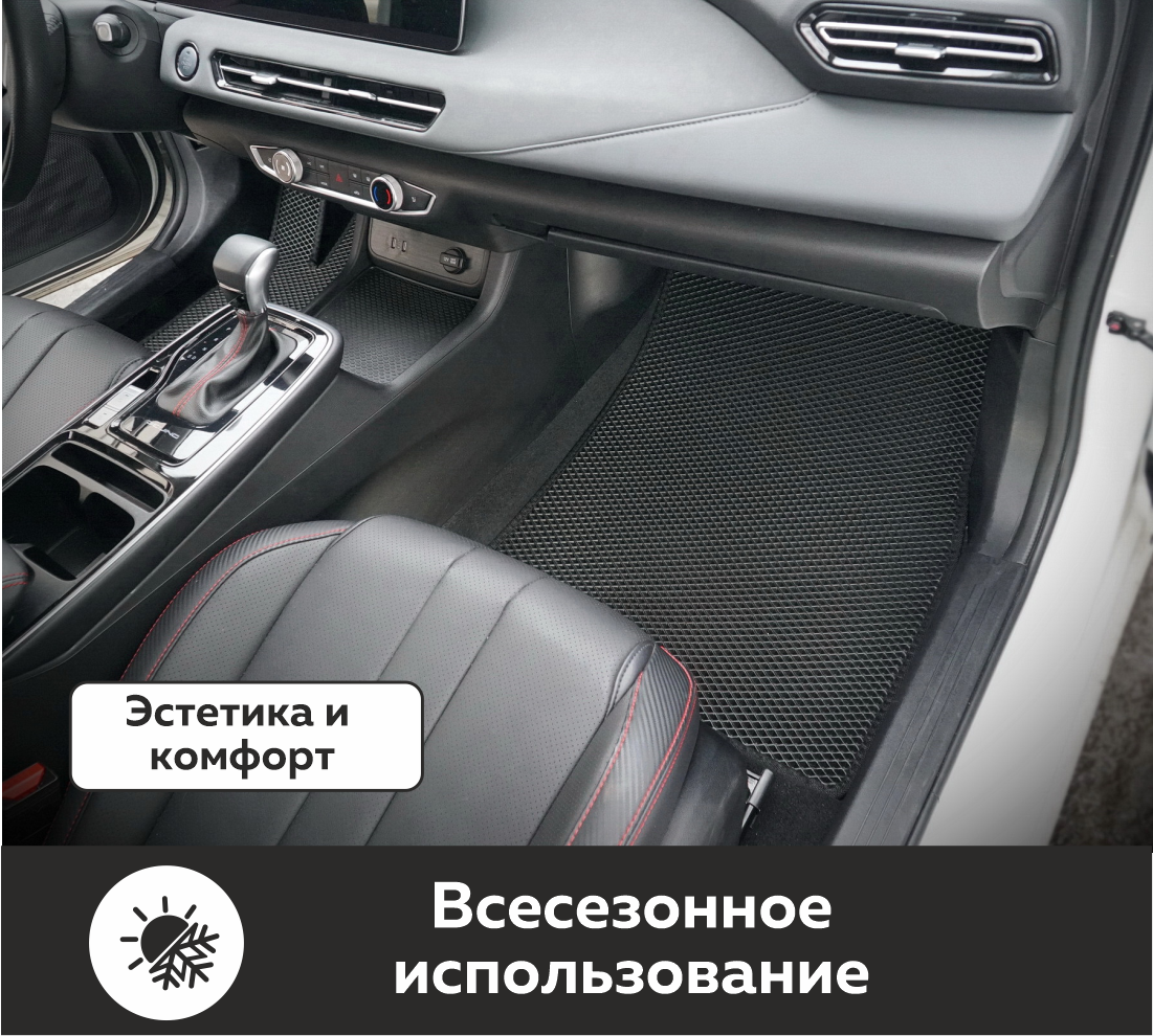Автомобильные коврики EVA BAIC U5 Plus (2021->) – это долговечные, удобные и универсальные аксессуары, которые помогут надежно защитить салон и багажник вашего авто от пыли, грязи и влаги в любое время года.