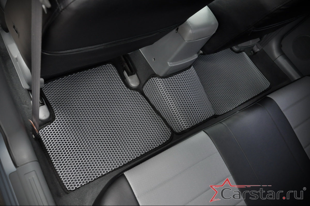 Толщина ковриков EVA составляет 10-12 мм. Глубина ячеек 7-8 мм. Такая толщина ковриков позволяет им служить довольно долго, не протираясь до 3 лет. А благодаря такой глубине ячеек коврик EVA площадью 1 кв.м. способен захватить около 3,5 л жидкости, сохраняя в чистоте вашу обувь и обивку салона.