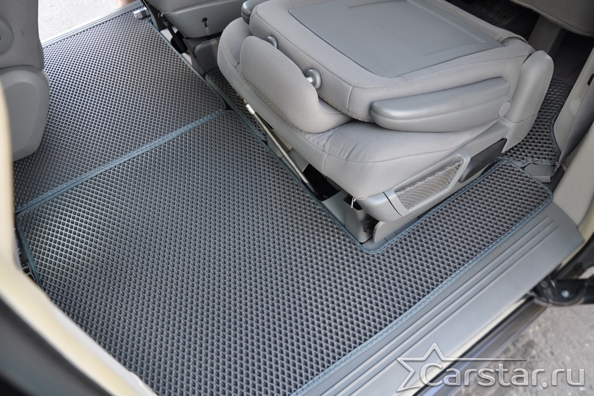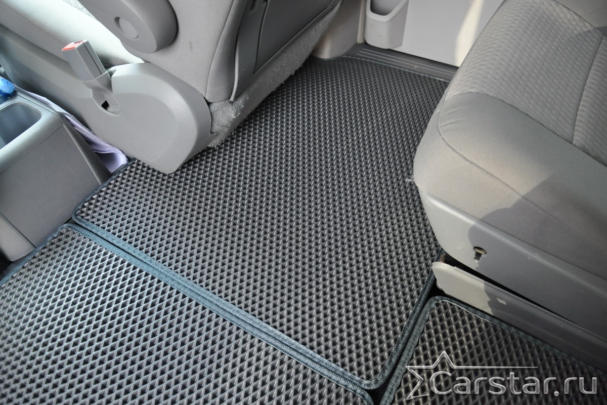 Автомобильные коврики EVA Dodge Grand Caravan V (2007-2020) 2 ряд: кресла 1+1 убираются в пол – это долговечные, удобные и универсальные аксессуары, которые помогут надежно защитить салон и багажник вашего авто от пыли, грязи и влаги в любое время года.