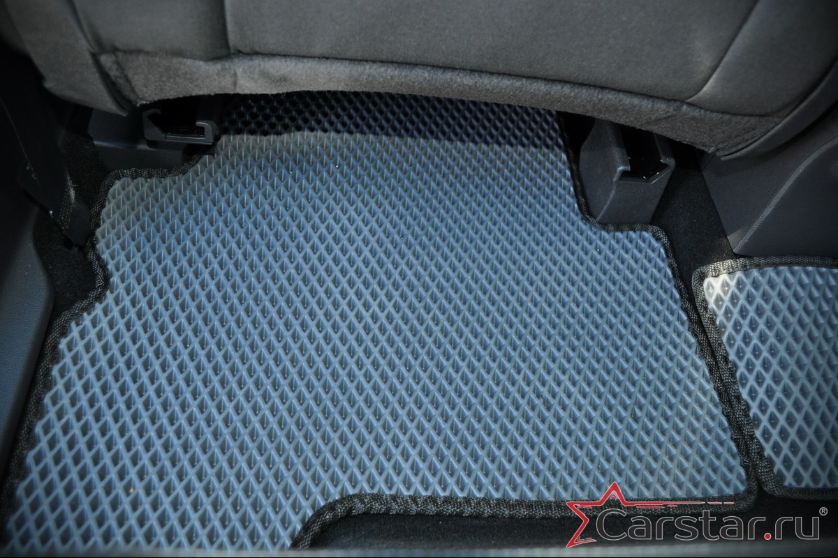 Толщина ковриков EVA составляет 10-12 мм. Глубина ячеек 7-8 мм. Такая толщина ковриков позволяет им служить довольно долго, не протираясь до 3 лет. А благодаря такой глубине ячеек коврик EVA площадью 1 кв.м. способен захватить около 3,5 л жидкости, сохраняя в чистоте вашу обувь и обивку салона.