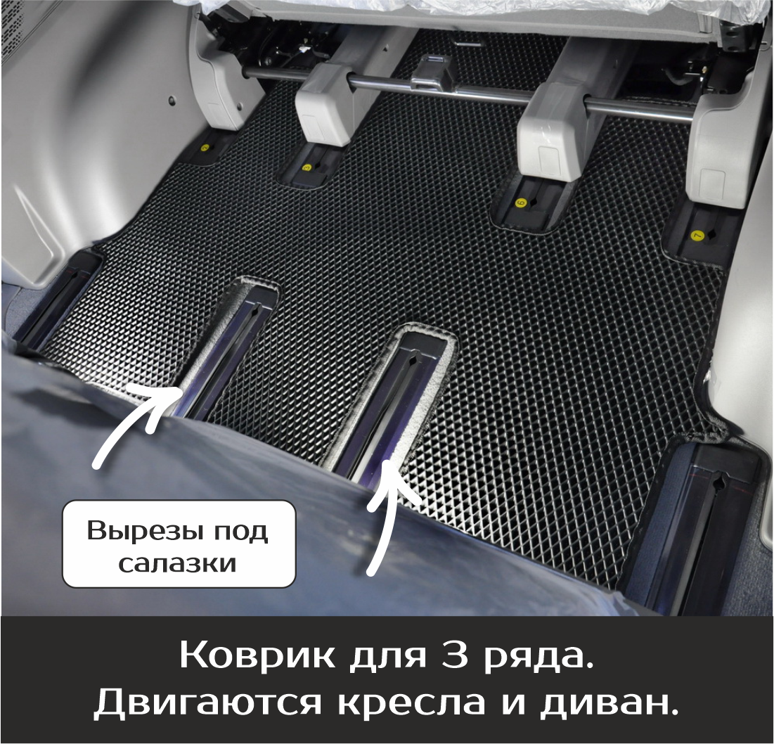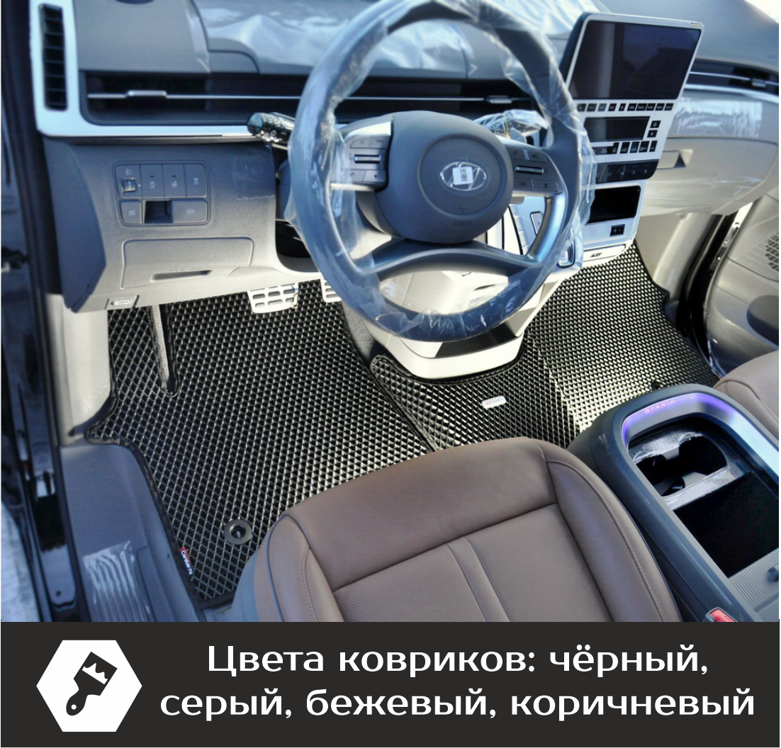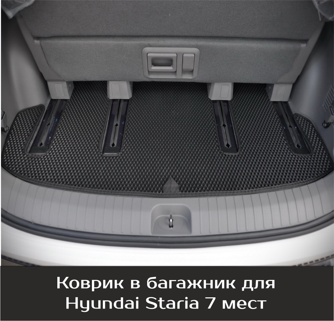 Автомобильные коврики EVA Hyundai Staria 7 мест (2021->) – это долговечные, удобные и универсальные аксессуары, которые помогут надежно защитить салон и багажник вашего авто от пыли, грязи и влаги в любое время года.