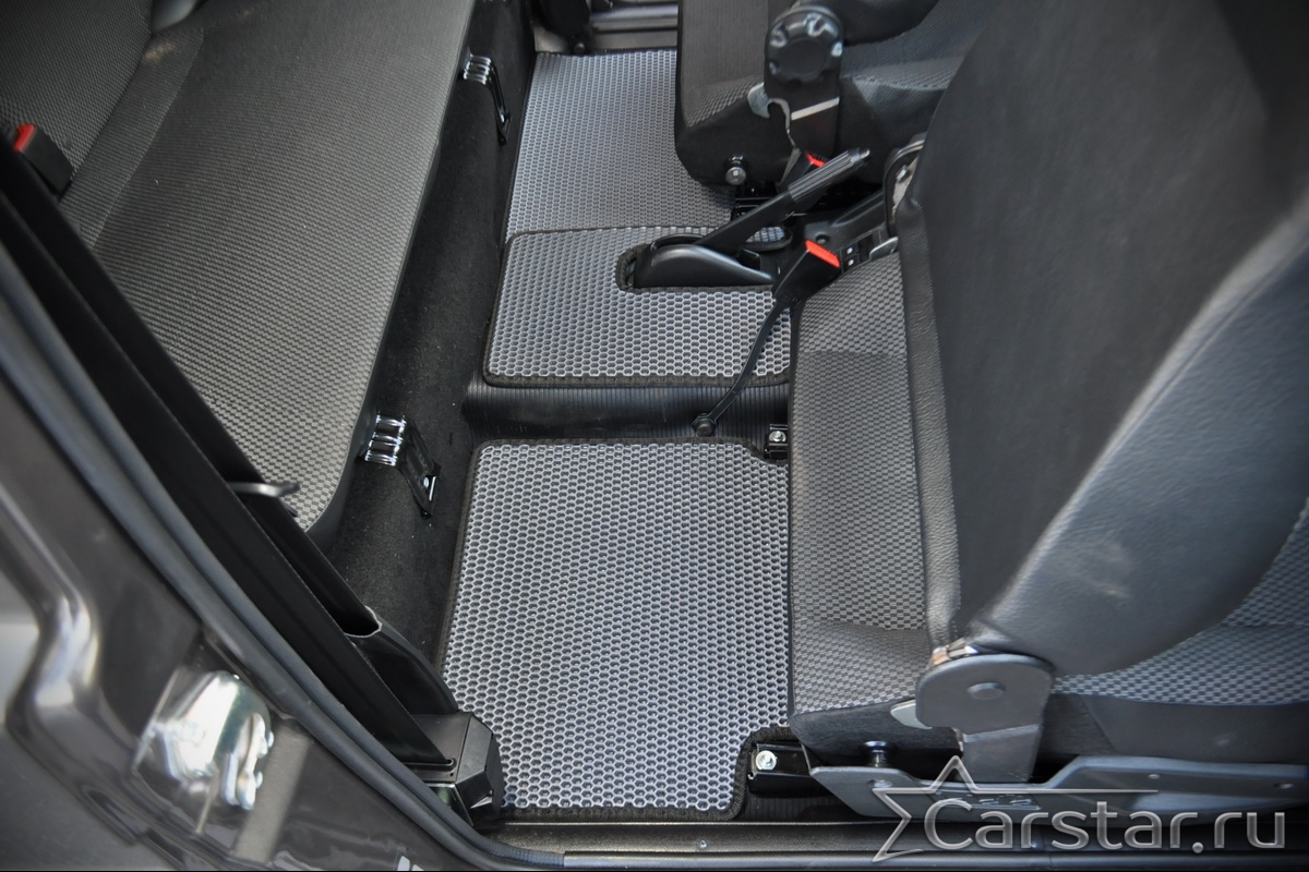 Толщина ковриков EVA составляет 10-12 мм. Глубина ячеек 7-8 мм. Такая толщина ковриков позволяет им служить довольно долго, не протираясь до 3 лет. А благодаря такой глубине ячеек коврик EVA площадью 1 кв.м. способен захватить около 3,5 л жидкости, сохраняя в чистоте вашу обувь и обивку салона.