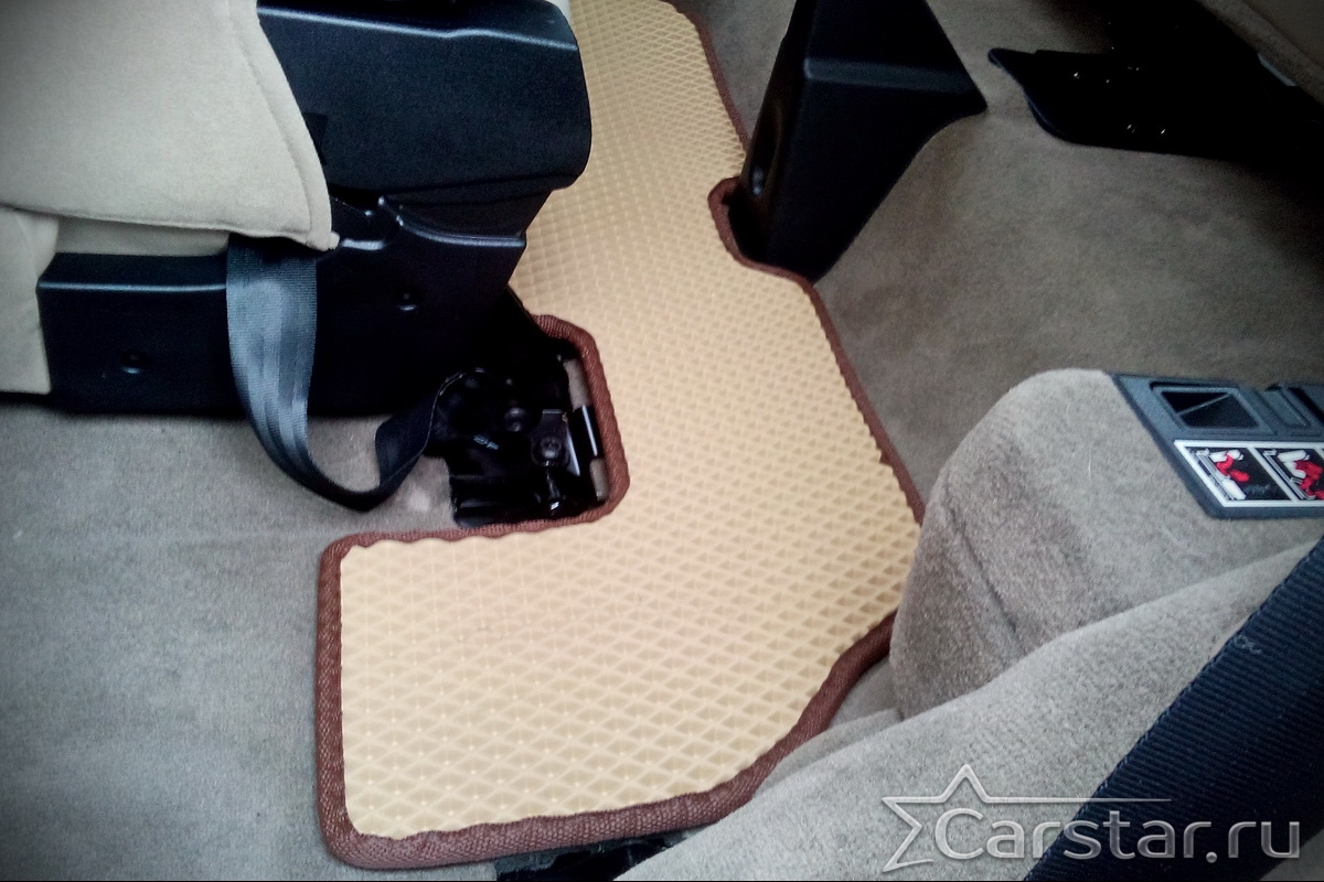 Толщина ковриков EVA составляет 10-12 мм. Глубина ячеек 7-8 мм. Такая толщина ковриков позволяет им служить довольно долго, не протираясь до 3 лет. А благодаря такой глубине ячеек коврик EVA площадью 1 кв.м. способен захватить около 3,5 л жидкости, сохраняя в чистоте вашу обувь и обивку салона.