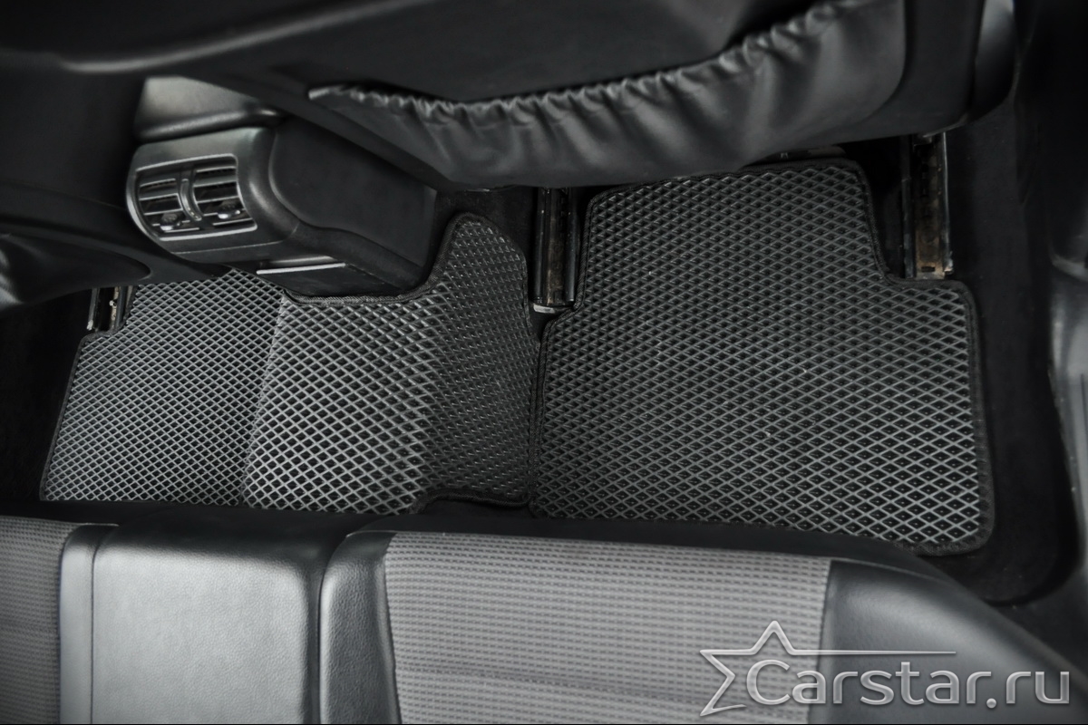 Толщина ковриков EVA составляет 10-12 мм. Глубина ячеек 7-8 мм. Такая толщина ковриков позволяет им служить довольно долго, не протираясь до 3 лет. А благодаря такой глубине ячеек коврик EVA площадью 1 кв.м. способен захватить около 3,5 л жидкости, сохраняя в чистоте вашу обувь и обивку салона.