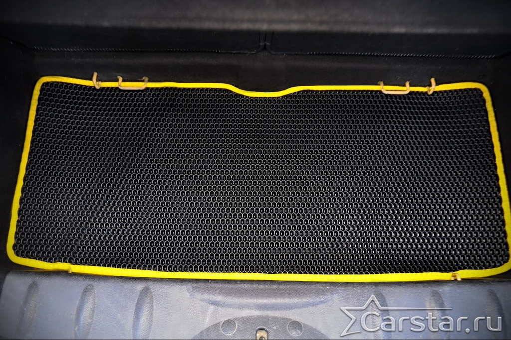 Толщина ковриков EVA составляет 10-12 мм. Глубина ячеек 7-8 мм. Такая толщина ковриков позволяет им служить довольно долго, не протираясь до 3 лет. А благодаря такой глубине ячеек коврик EVA площадью 1 кв.м. способен захватить около 3,5 л жидкости, сохраняя в чистоте вашу обувь и обивку салона.