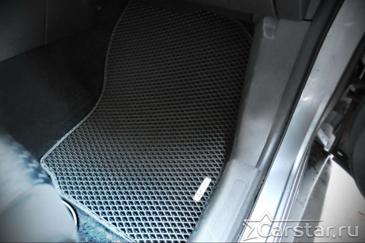 Толщина ковриков EVA составляет 10-12 мм. Глубина ячеек 7-8 мм. Такая толщина ковриков позволяет им служить довольно долго, не протираясь до 3 лет. А благодаря такой глубине ячеек коврик EVA площадью 1 кв.м. способен захватить около 3,5 л жидкости, сохраняя в чистоте вашу обувь и обивку салона.