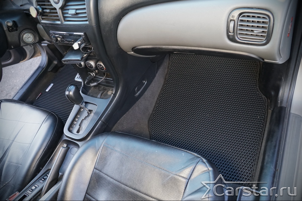Толщина ковриков EVA составляет 10-12 мм. Глубина ячеек 7-8 мм. Такая толщина ковриков позволяет им служить довольно долго, не протираясь до 3 лет. А благодаря такой глубине ячеек коврик EVA площадью 1 кв.м. способен захватить около 3,5 л жидкости, сохраняя в чистоте вашу обувь и обивку салона.