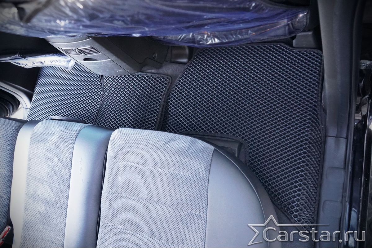Толщина ковриков EVA составляет 10-12 мм. Глубина ячеек 7-8 мм. Такая толщина ковриков позволяет им служить довольно долго, не протираясь до 3 лет. А благодаря такой глубине ячеек коврик EVA площадью 1 кв.м. способен захватить около 3,5 л жидкости, сохраняя в чистоте вашу обувь и обивку салона.