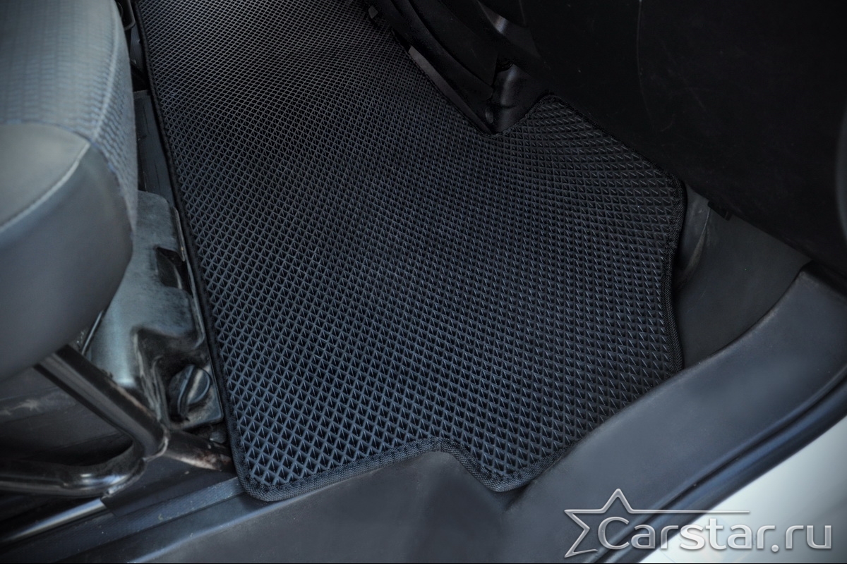 Толщина ковриков EVA составляет 10-12 мм. Глубина ячеек 7-8 мм. Такая толщина ковриков позволяет им служить довольно долго, не протираясь до 3 лет. А благодаря такой глубине ячеек коврик EVA площадью 1 кв.м. способен захватить около 3,5 л жидкости, сохраняя в чистоте вашу обувь и обивку салона.
