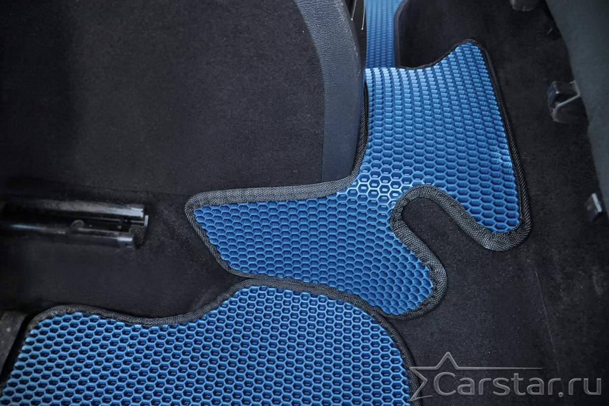 Толщина ковриков EVA составляет 10-12 мм. Глубина ячеек 7-8 мм. Такая толщина ковриков позволяет им служить довольно долго, не протираясь до 3 лет. А благодаря такой глубине ячеек коврик EVA площадью 1 кв.м. способен захватить около 3,5 л жидкости, сохраняя в чистоте вашу обувь и обивку салона.