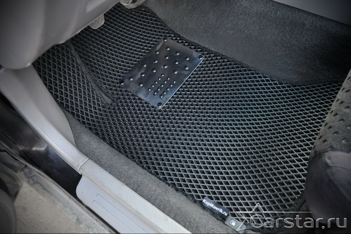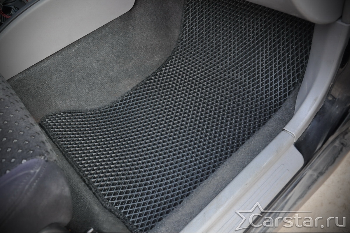 Толщина ковриков EVA составляет 10-12 мм. Глубина ячеек 7-8 мм. Такая толщина ковриков позволяет им служить довольно долго, не протираясь до 3 лет. А благодаря такой глубине ячеек коврик EVA площадью 1 кв.м. способен захватить около 3,5 л жидкости, сохраняя в чистоте вашу обувь и обивку салона.