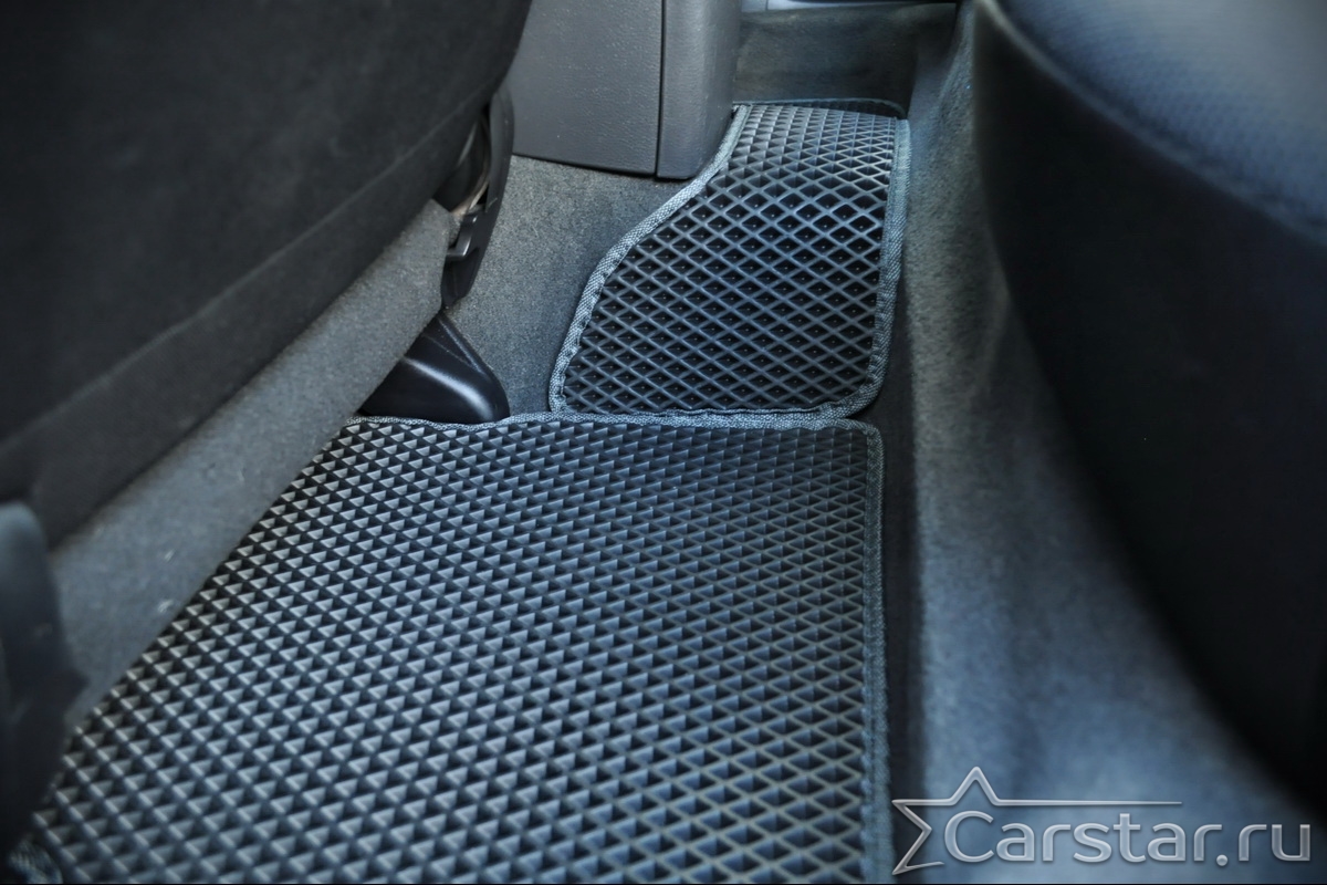 Толщина ковриков EVA составляет 10-12 мм. Глубина ячеек 7-8 мм. Такая толщина ковриков позволяет им служить довольно долго, не протираясь до 3 лет. А благодаря такой глубине ячеек коврик EVA площадью 1 кв.м. способен захватить около 3,5 л жидкости, сохраняя в чистоте вашу обувь и обивку салона.