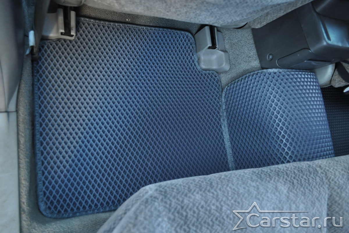 Толщина ковриков EVA составляет 10-12 мм. Глубина ячеек 7-8 мм. Такая толщина ковриков позволяет им служить довольно долго, не протираясь до 3 лет. А благодаря такой глубине ячеек коврик EVA площадью 1 кв.м. способен захватить около 3,5 л жидкости, сохраняя в чистоте вашу обувь и обивку салона.