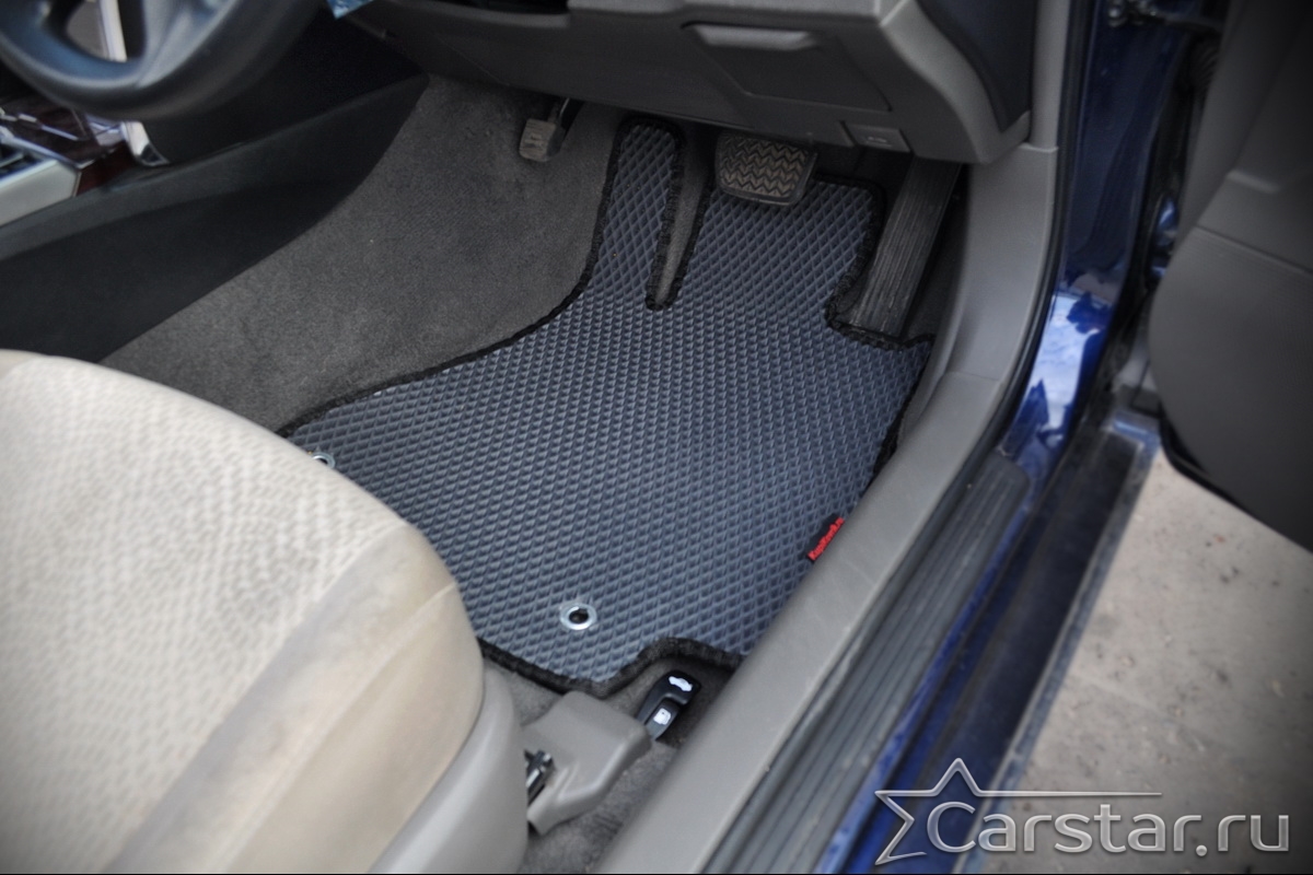 Толщина ковриков EVA составляет 10-12 мм. Глубина ячеек 7-8 мм. Такая толщина ковриков позволяет им служить довольно долго, не протираясь до 3 лет. А благодаря такой глубине ячеек коврик EVA площадью 1 кв.м. способен захватить около 3,5 л жидкости, сохраняя в чистоте вашу обувь и обивку салона.