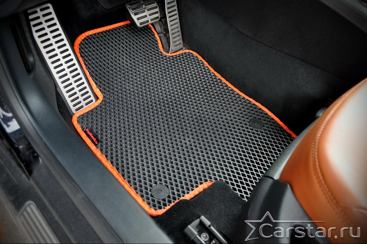 Автомобильные коврики EVA прекрасно подходят для всех существующих марок и моделей авто, здесь вы сможете заказать оптимальный аксессуар любого возможного цвета. По размерам они больше, чем стандартные резиновые коврики, поэтому покрывают максимальную площадь пола в салоне. А двойная система креплений (клипсы и липучки) позволяет надежно зафиксировать коврики в нужном месте.