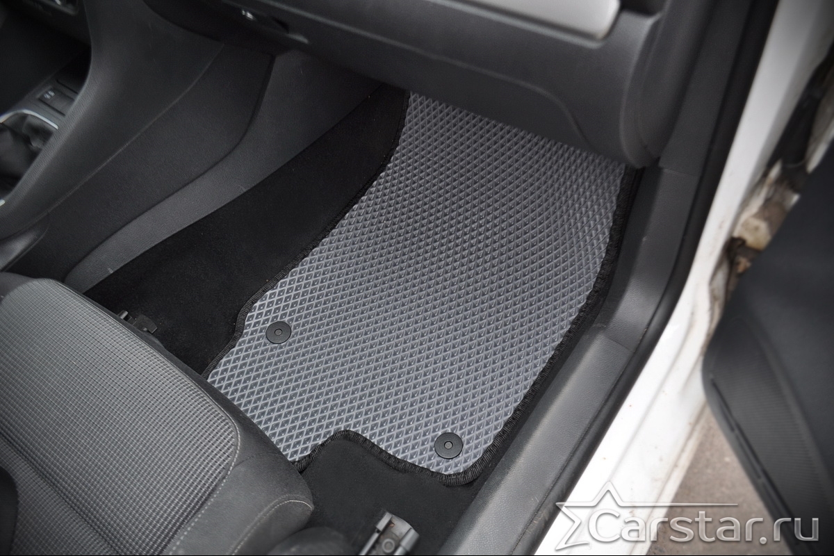 Коврики EVA надёжно крепятся с помощью оригинальных систем фиксации. Благодаря клипсам и липучке коврики защищены от смещений, что обеспечивает комфорт и безопасность вождения. Максимальное удобство также достигается точными, улучшенными лекалами для каждого автомобиля.