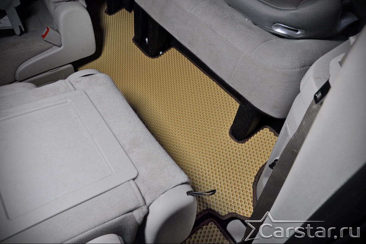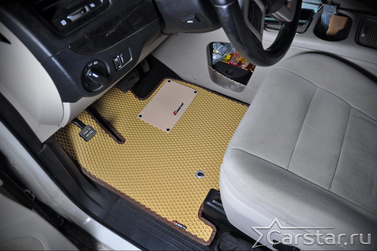 Текстильные коврики надёжно крепятся с помощью оригинальных систем фиксации. Обратная сторона имеет противоскользящее покрытие, что обеспечивает защиту от смещений и безопасность. Максимальное удобство достигается точными лекалами.