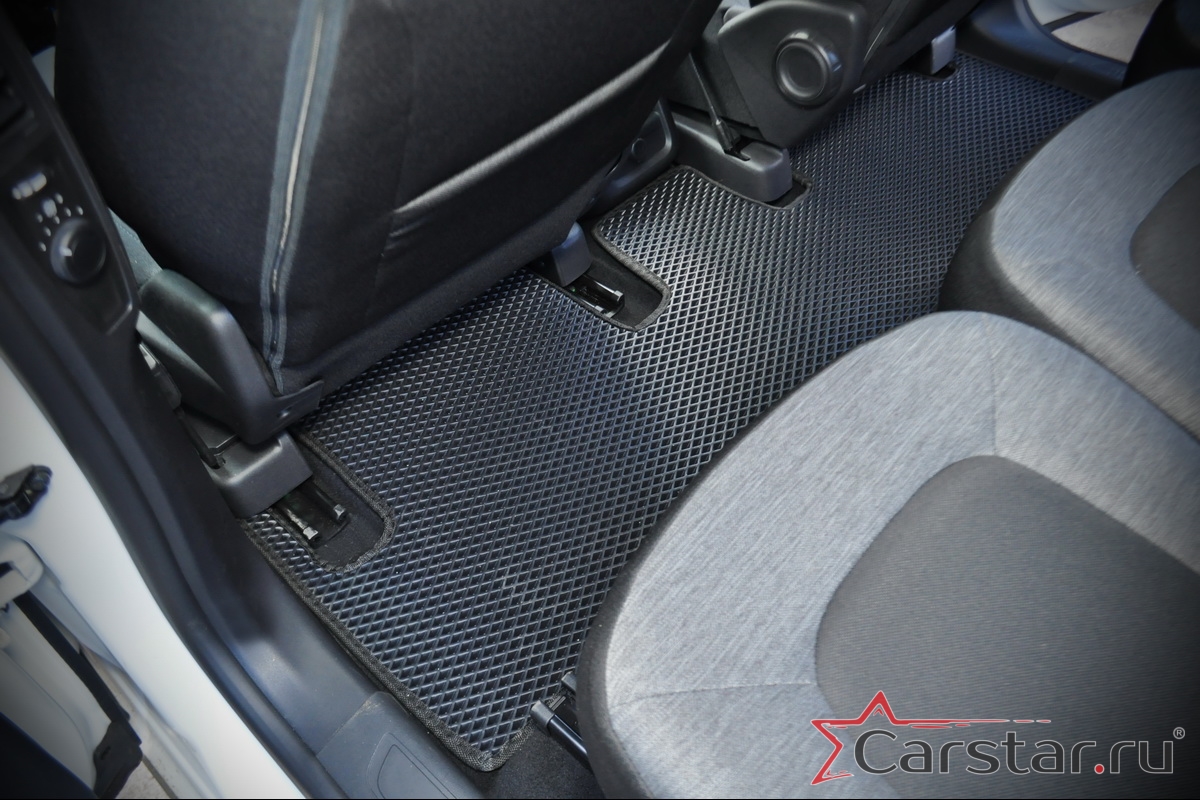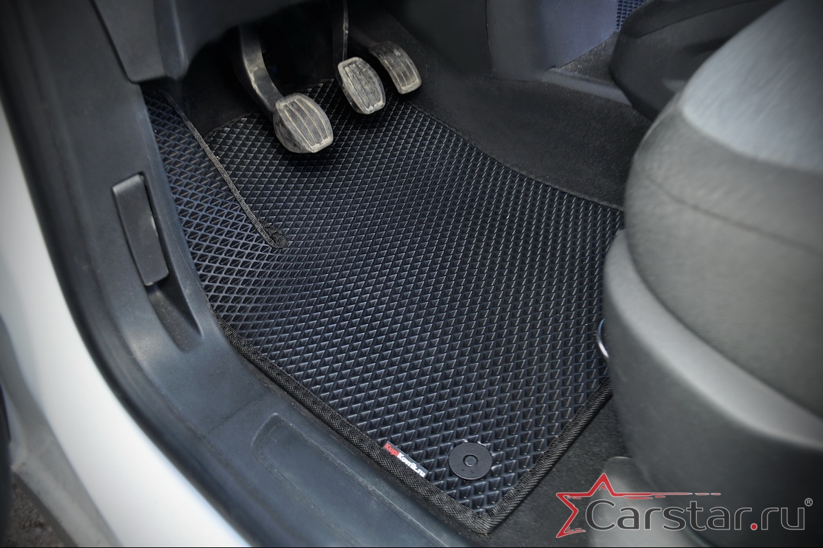 Текстильные коврики надёжно крепятся с помощью оригинальных систем фиксации. Обратная сторона имеет противоскользящее покрытие, что обеспечивает защиту от смещений и безопасность. Максимальное удобство достигается точными лекалами.