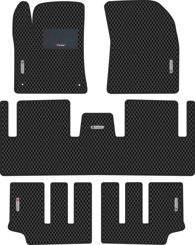 Текстильные автомобильные коврики Citroen C4 Picasso II Grand 3 ряда (2013-2018) – это классический аксессуар, который обеспечит салону автомобиля неизменную чистоту, порядок и уют. Компания Carstar предлагает изделия из качественного ковролина в сочетании с полипропиленовым основанием на шипах, такая комбинация делает их прочными и водонепроницаемыми.