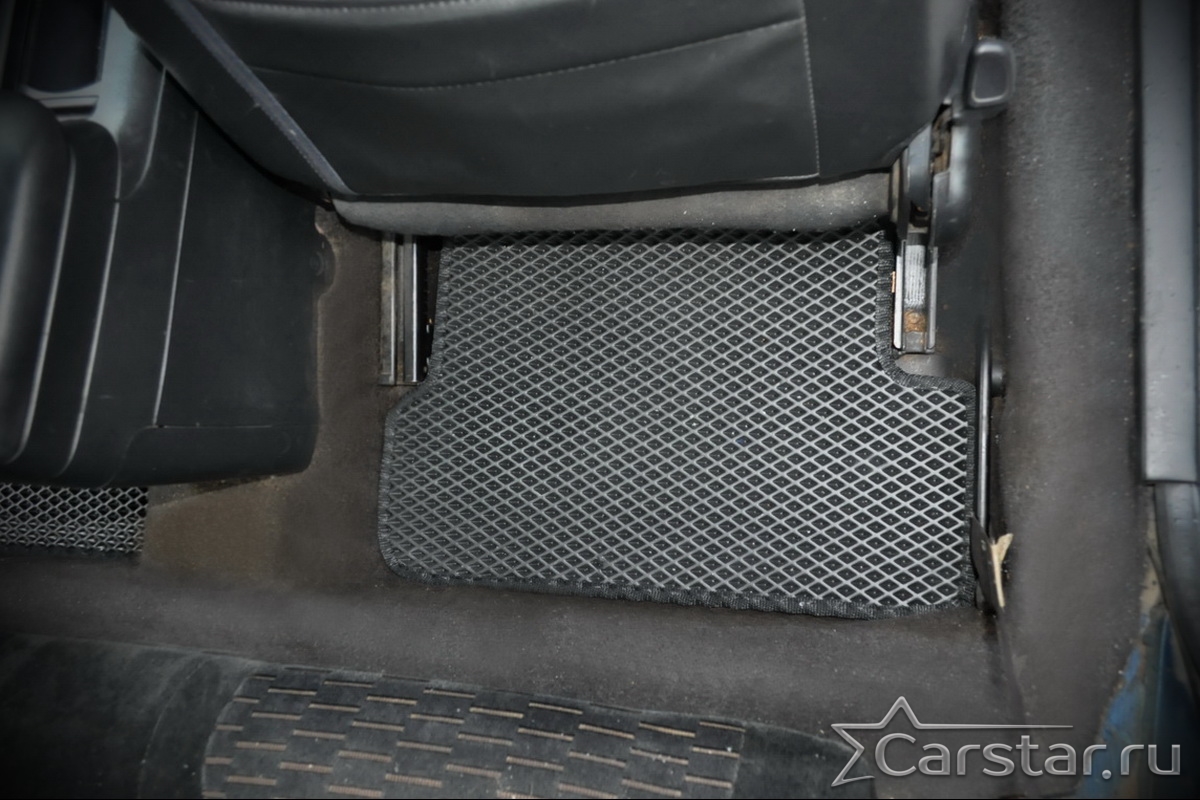 Текстильные коврики надёжно крепятся с помощью оригинальных систем фиксации. Обратная сторона имеет противоскользящее покрытие, что обеспечивает защиту от смещений и безопасность. Максимальное удобство достигается точными лекалами.