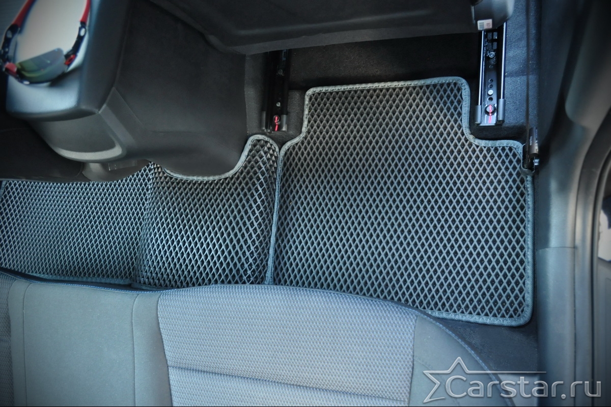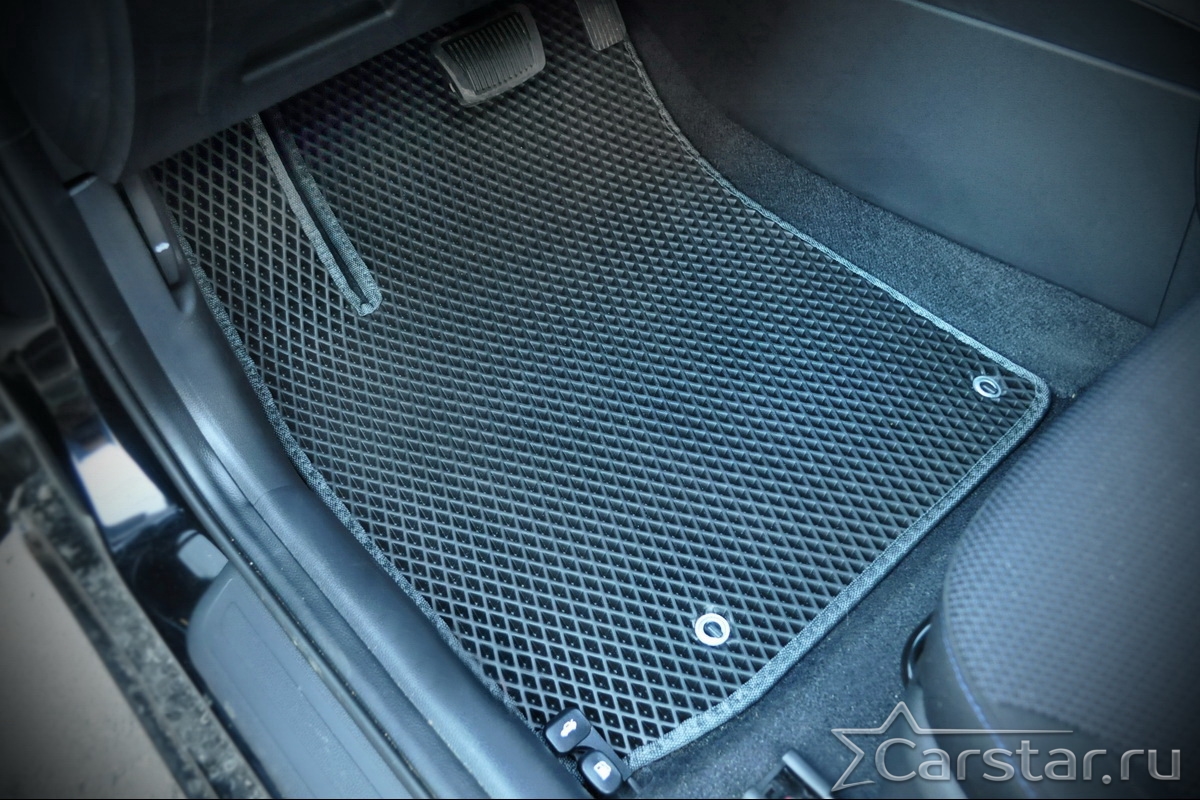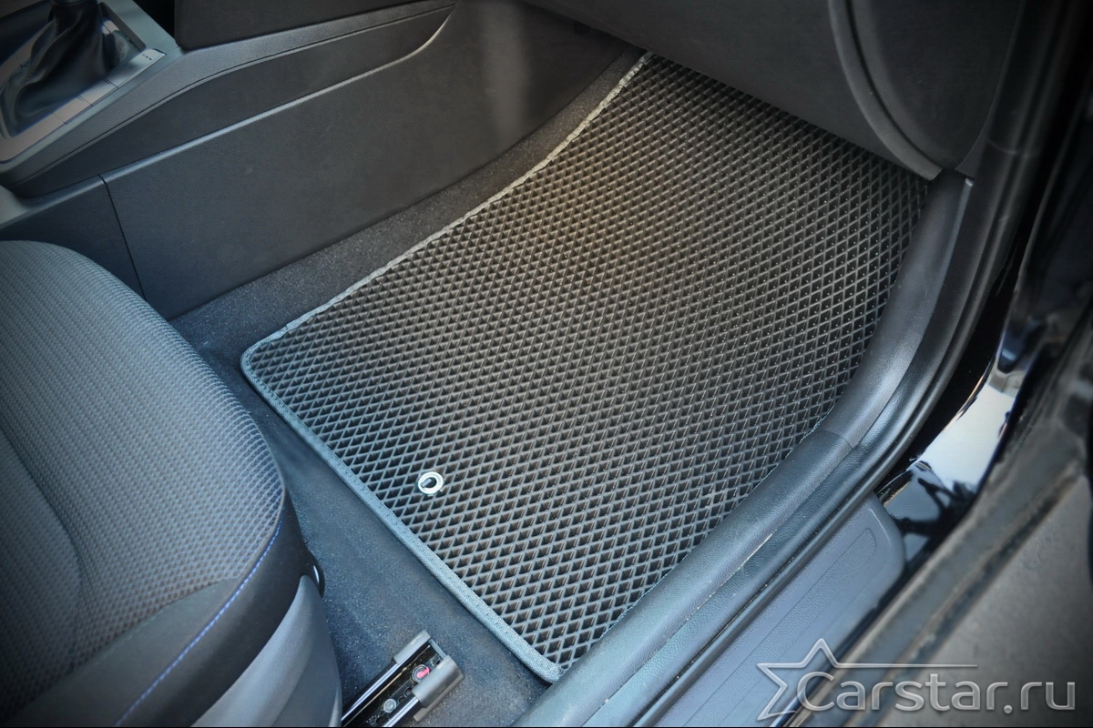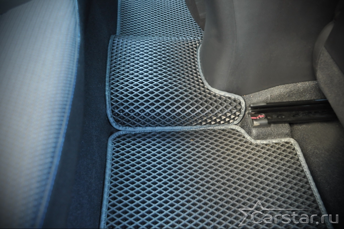 Текстильные коврики надёжно крепятся с помощью оригинальных систем фиксации. Обратная сторона имеет противоскользящее покрытие, что обеспечивает защиту от смещений и безопасность. Максимальное удобство достигается точными лекалами.