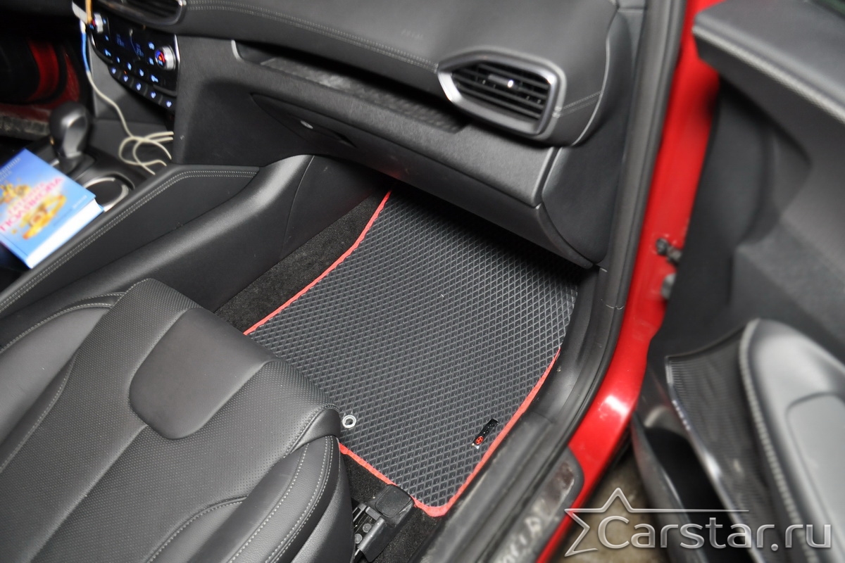 Текстильные автомобильные коврики Hyundai Santa Fe IV рестайл 3 ряда (2020->) – это классический аксессуар, который обеспечит салону автомобиля неизменную чистоту, порядок и уют. Компания Carstar предлагает изделия из качественного ковролина в сочетании с полипропиленовым основанием на шипах, такая комбинация делает их прочными и водонепроницаемыми.