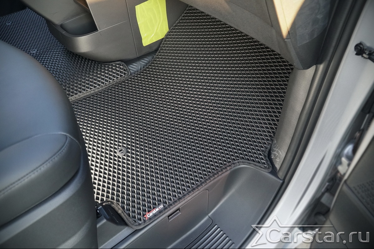 Текстильные коврики надёжно крепятся с помощью оригинальных систем фиксации. Обратная сторона имеет противоскользящее покрытие, что обеспечивает защиту от смещений и безопасность. Максимальное удобство достигается точными лекалами.