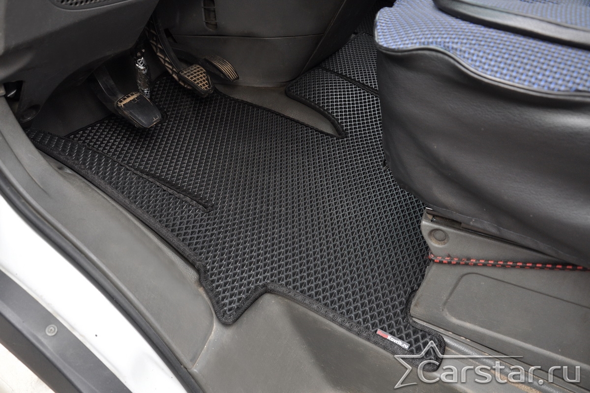 Текстильные коврики надёжно крепятся с помощью оригинальных систем фиксации. Обратная сторона имеет противоскользящее покрытие, что обеспечивает защиту от смещений и безопасность. Максимальное удобство достигается точными лекалами.