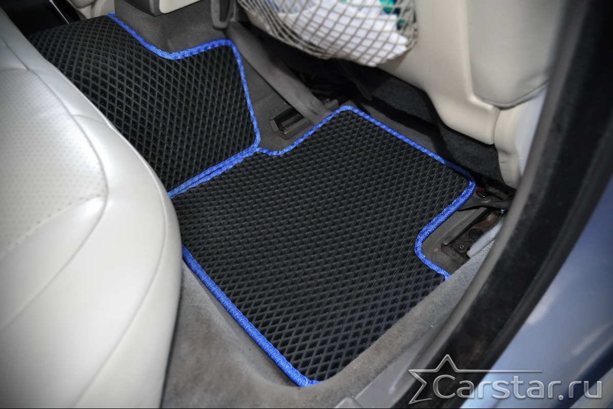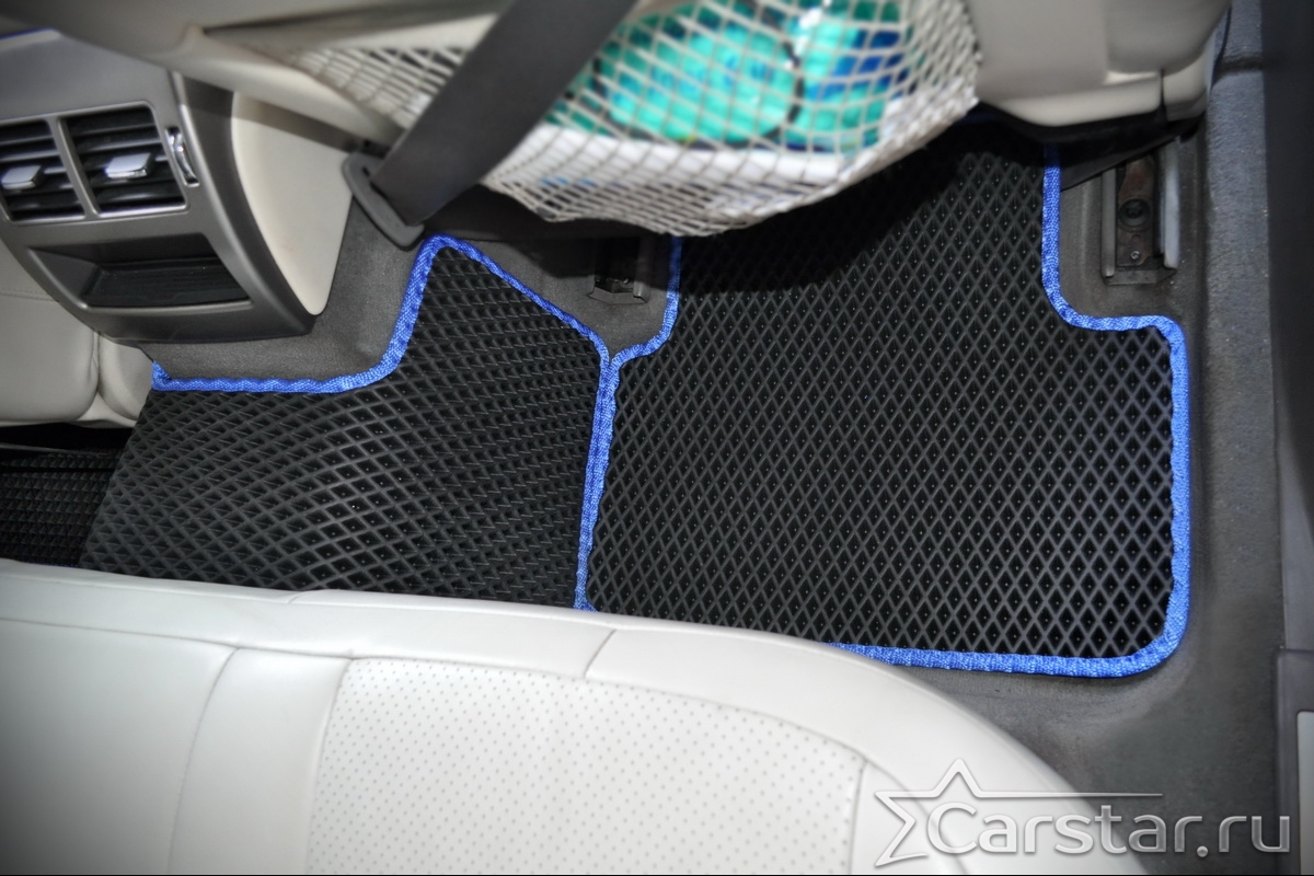 Текстильные коврики надёжно крепятся с помощью оригинальных систем фиксации. Обратная сторона имеет противоскользящее покрытие, что обеспечивает защиту от смещений и безопасность. Максимальное удобство достигается точными лекалами.