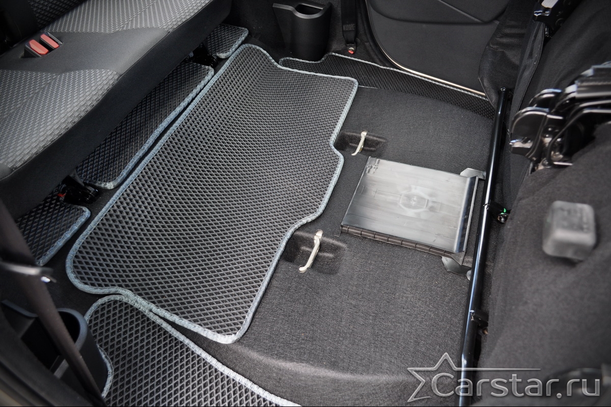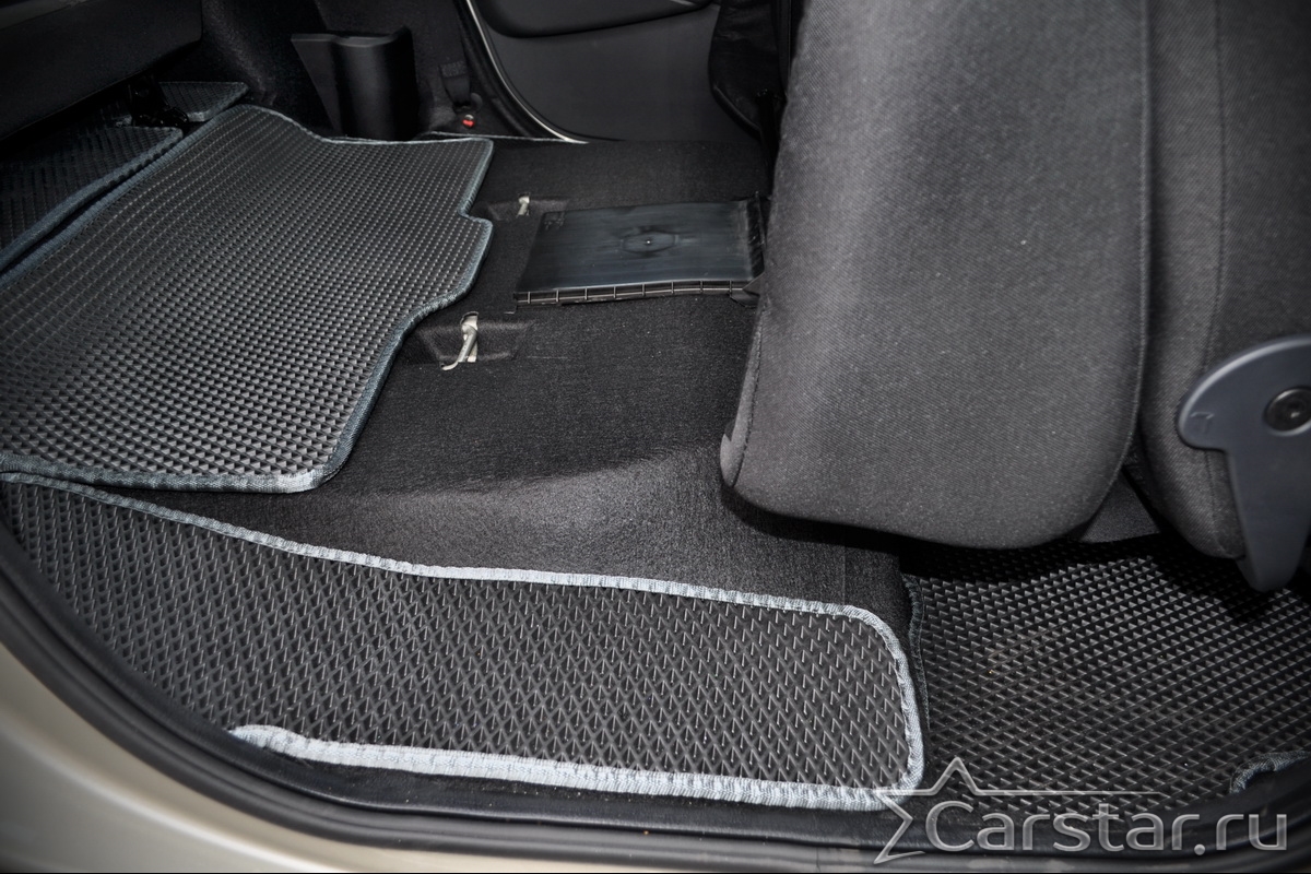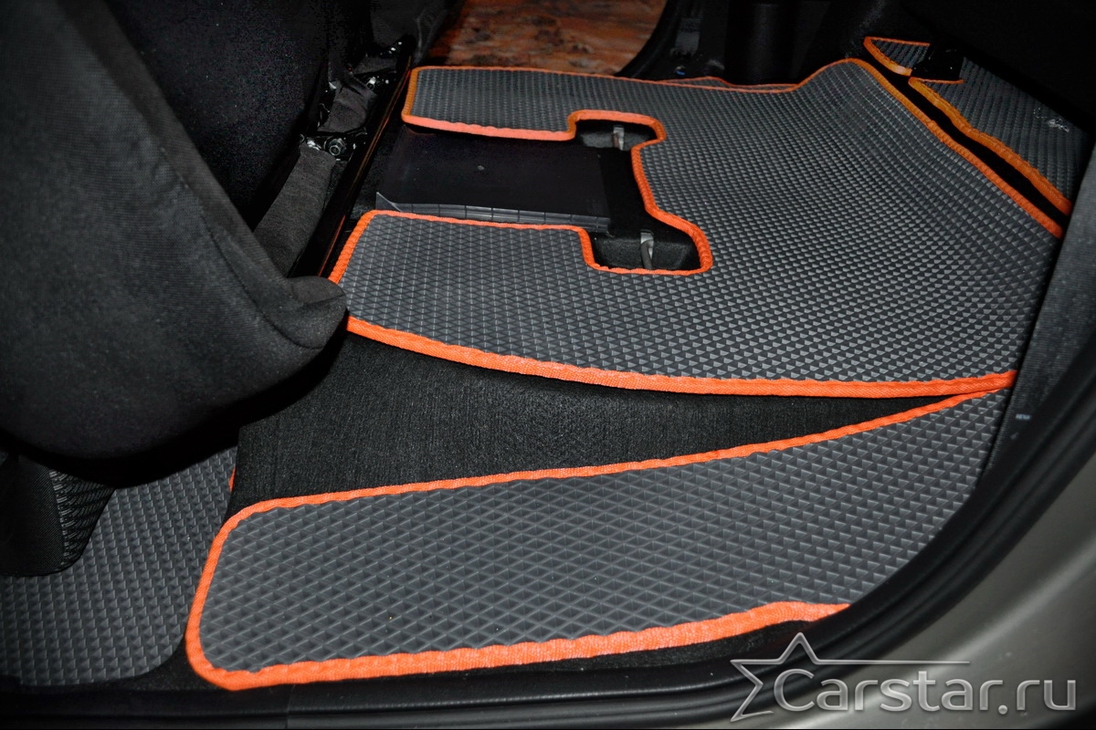 Текстильные коврики надёжно крепятся с помощью оригинальных систем фиксации. Обратная сторона имеет противоскользящее покрытие, что обеспечивает защиту от смещений и безопасность. Максимальное удобство достигается точными лекалами.