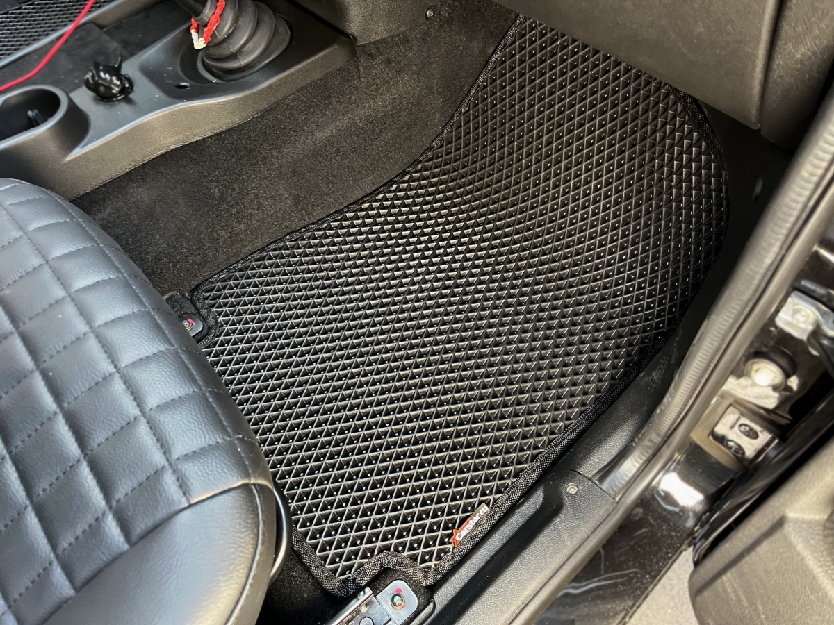 Приятный на ощупь густой плотный ворс текстильных ковриков придаст салону роскошный вид. Широкой выбор цветовой палитры ковролина и окантовки коврика не оставит равнодушным ни одного искушенного автолюбителя.