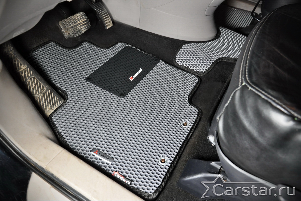 Текстильные коврики надёжно крепятся с помощью оригинальных систем фиксации. Обратная сторона имеет противоскользящее покрытие, что обеспечивает защиту от смещений и безопасность. Максимальное удобство достигается точными лекалами.