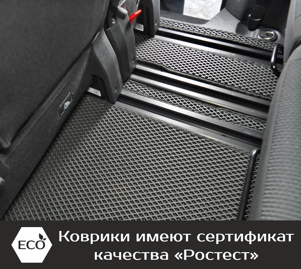 Нижняя часть ковра изготавливается из термопластичной резины с шипами 2-3 мм по всей поверхности, что предотвращает скольжение коврика по салону автомобиля.