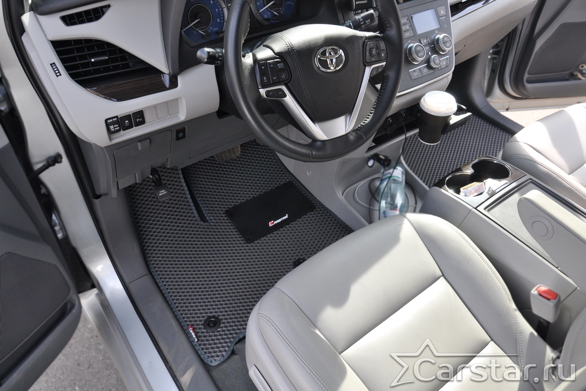 Текстильные автомобильные коврики Toyota Sienna III 7 мест (2010-2020) – это классический аксессуар, который обеспечит салону автомобиля неизменную чистоту, порядок и уют. Компания Carstar предлагает изделия из качественного ковролина в сочетании с полипропиленовым основанием на шипах, такая комбинация делает их прочными и водонепроницаемыми.