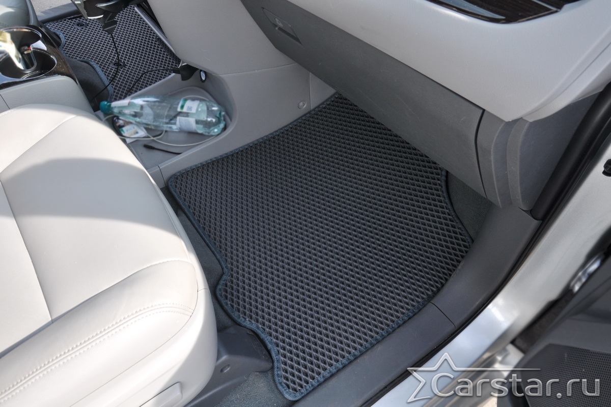 Текстильные коврики надёжно крепятся с помощью оригинальных систем фиксации. Обратная сторона имеет противоскользящее покрытие, что обеспечивает защиту от смещений и безопасность. Максимальное удобство достигается точными лекалами.